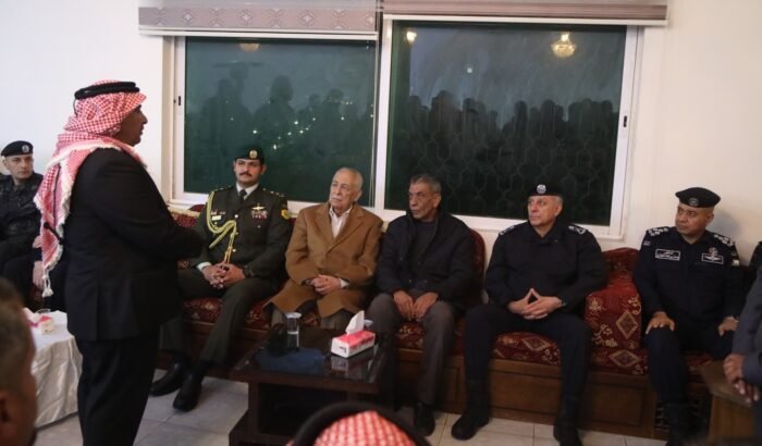 وفي منطقة أرينبة الشرقية في لواء الجيزة، بمحافظة العاصمة، نقل العيسوي، خلال زيارته بيت عزاء شهيد الواجب الرقيب خلدون أحمد الرقب، تعازي ومواساة جلالة الملك إلى ذوي الفقيد وعموم عشيرة الرقب، سائلاً المولى عز وجل أن يتقبل الشهيد في عليين، وأن يلهم أهله الصبر والثبات، ويجزيه عنا وعن وطنه خير الجزاء.