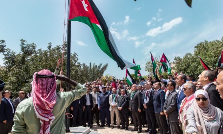 واستهلت الجامعة احتفالاتها بانطلاق مسيرة وطنية من امام مبنى الملك الحارث الرابع يتقدمها رئيس الجامعة الأستاذ الدكتور خالد الحياري، ونواب الرئيس، وعمداء الكليات، إلى جانب حشد واسع من أعضاء الهيئتين الأكاديمية والإدارية والطلبة، وصولًا إلى سارية العلم في قلب الجامعة، حيث ارتفعت الراية الأردنية شامخة على أنغام السلام الملكي، في مشهد وطني عكس رمزية العلم بوصفه عنوانًا للسيادة والكرامة وتاريخًا حافلًا بالتضحيات والإنجازات.