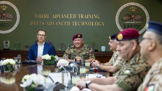 وجال جلالته والرئيس الفنلندي في المركز، واطلعا على ميادين التدريب والتجهيزات الفنية، إذ أكد جلالته أهمية مواصلة تطوير القدرات الدفاعية للقوات المسلحة، وتعزيز التعاون والتنسيق مع الدول الشقيقة والصديقة، لمواكبة التحديات الأمنية وترسيخ الأمن والاستقرار.